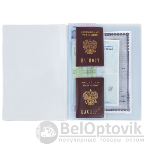 2 кармана для свидетельств о рождении и браке нового образца, ИНН или ПТС (21,5x30,5 см);