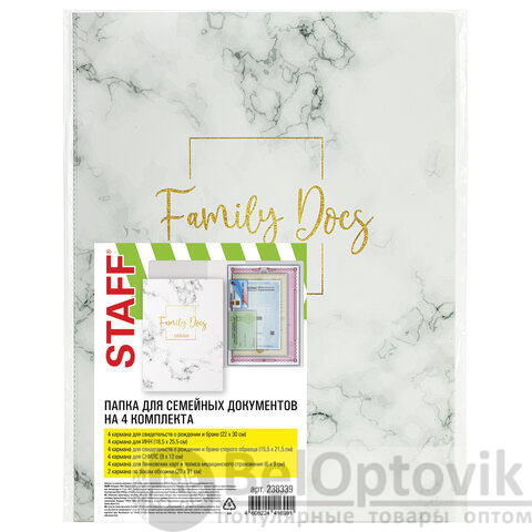 • 4 кармана для свидетельств о рождении и браке (22x30 см);