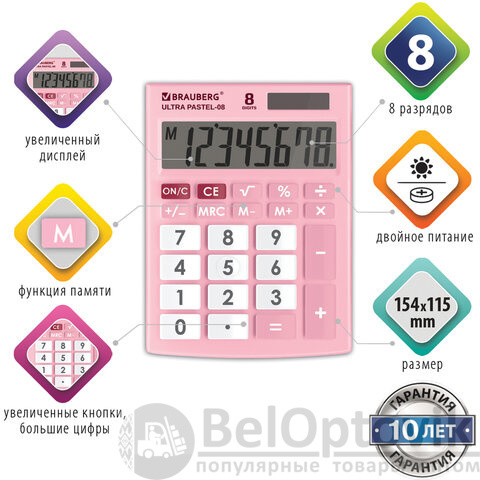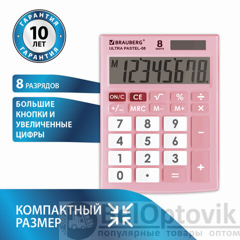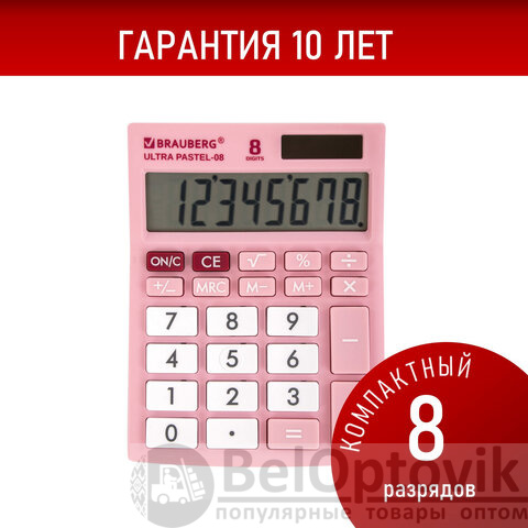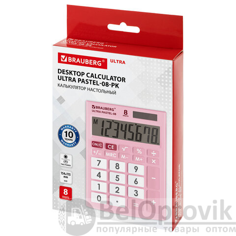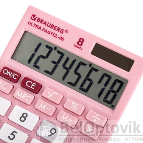 Настольный калькулятор BRAUBERG ULTRA PASTEL-08-PK. Большой яркий дисплей, устойчивый корпус с прорезиненными ножками и крупная клавиатура с цветной дифференциацией позволяют работать эффективнее.