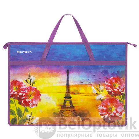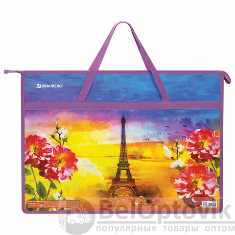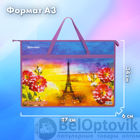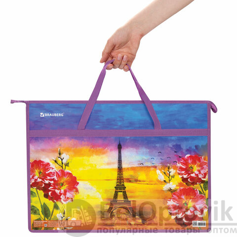 Папка для рисунков и чертежей с ручками BRAUBERG А3, пластик, молния сверху, "Paris", 270147