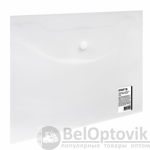 Папка-конверт с кнопкой STAFF - универсальная модель для хранения, транспортировки и защиты документов от повреждений природного и механического характера. Станет незаменимым помощником для школьников, студентов, офисных работников и творческих людей.