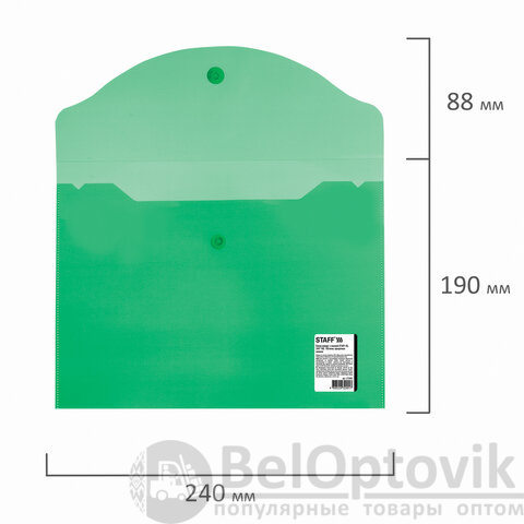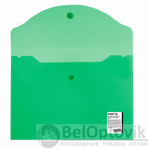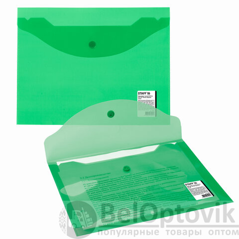 Папка-конверт с кнопкой МАЛОГО ФОРМАТА (240х190 мм), А5, прозрачная, зеленая, 0,15 мм, STAFF, 270464