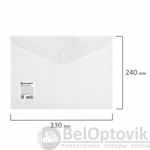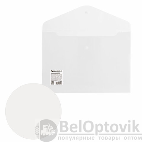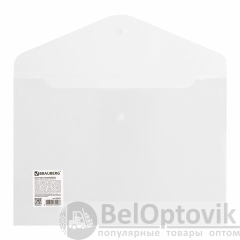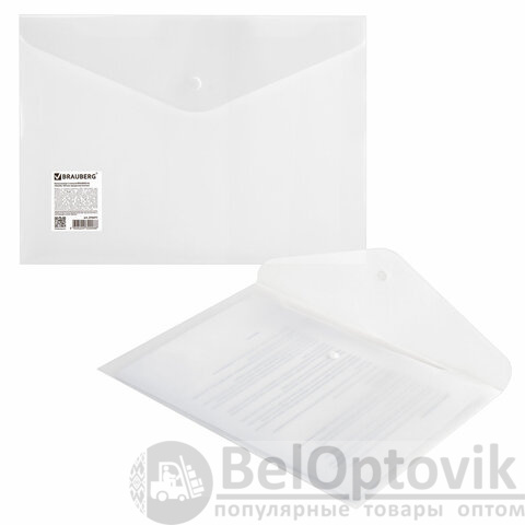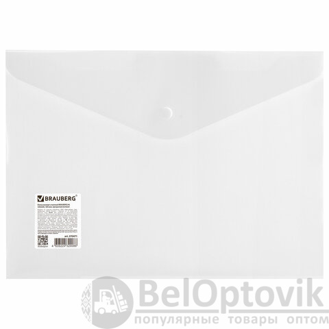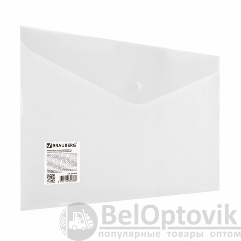 Папка-конверт с кнопкой BRAUBERG А4 до 100 л. матовая прозрачная СВЕРХПРОЧНАЯ 0,18 мм, 270471