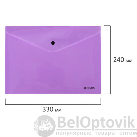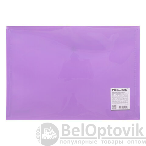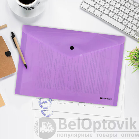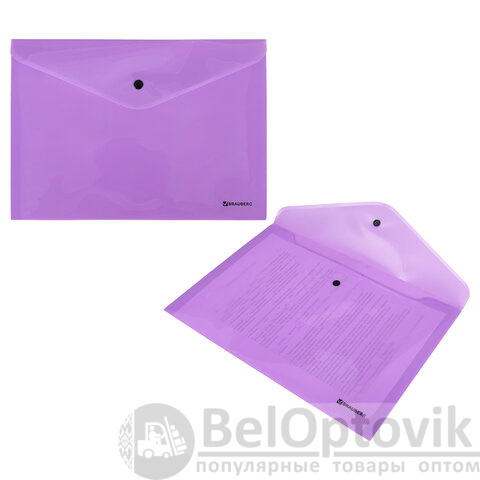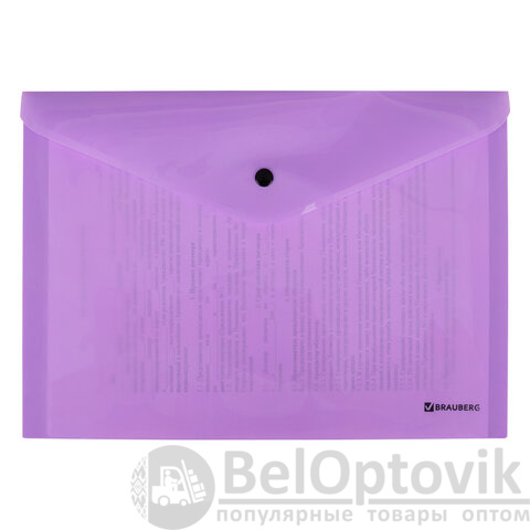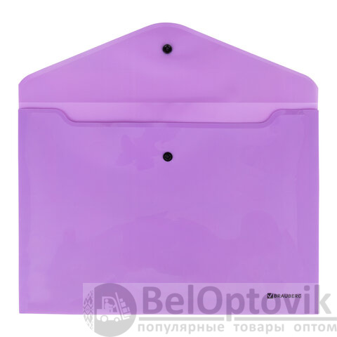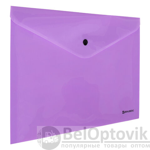 Папка-конверт с кнопкой BRAUBERG "Pastel", А4, до 100 листов, непрозрачная, лиловая, 0,18 мм, 270475