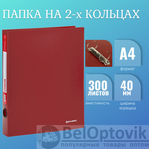 Папка на 2 кольцах BRAUBERG "Стандарт", 40 мм, красная, до 300 листов, 0,9 мм, 270480