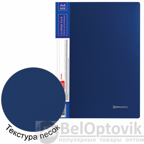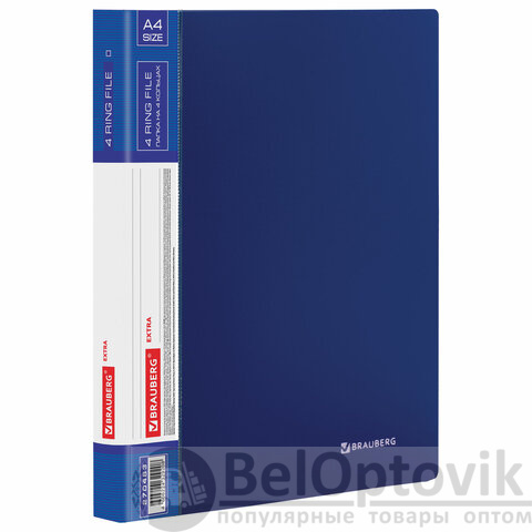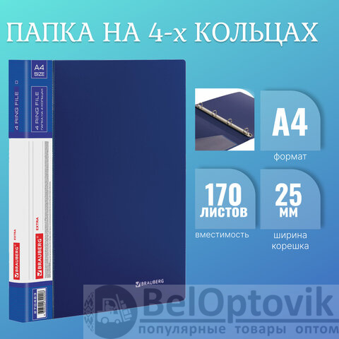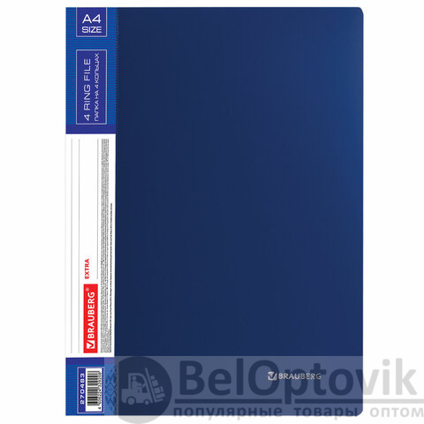 Папка на 4 кольцах, ширина 25 мм, BRAUBERG EXTRA, до 170 листов, СИНЯЯ, 0,7 мм, 270483