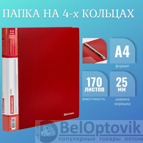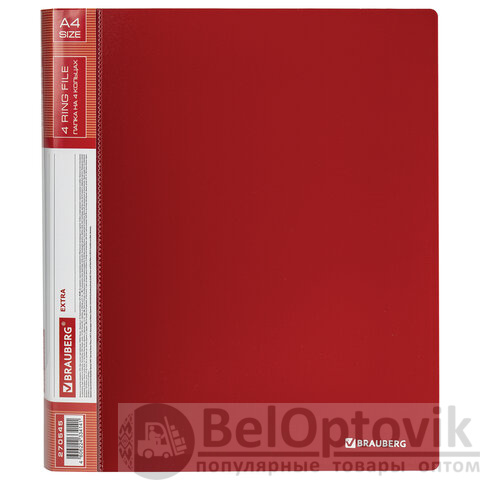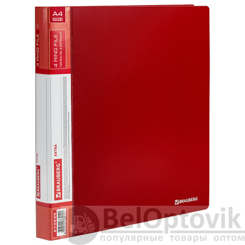 Папка на 4 кольцах, ширина 25 мм, BRAUBERG EXTRA, до 170 листов, КРАСНАЯ, 0,7 мм, 270545