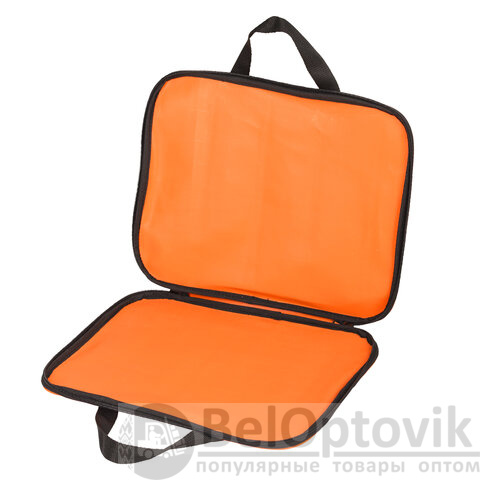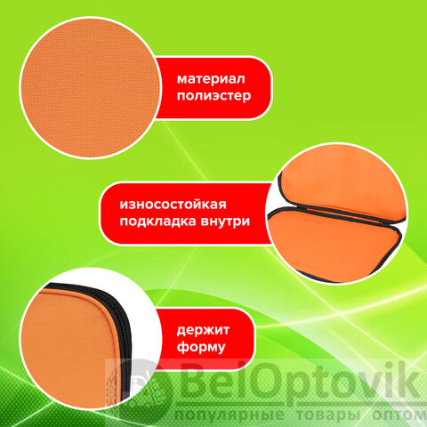 Выполнена из плотного полиэстера, что позволяет защитить документы, учебные пособия и прочие бумаги от замятий и повреждений. Ручки-тесьма. Застежка-молния по периметру папки, на молнии расположены 2 бегунка, поэтому папку можно открывать с любой стороны, а также полностью раскрыть на 180 градусов.