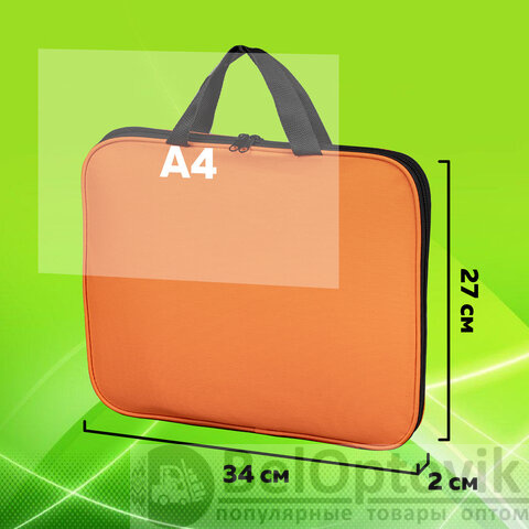 Папка на молнии с ручками STAFF EVERYDAY, А4, полиэстер, ярко-оранжевая, 270735