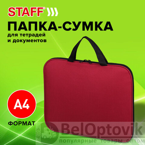Папка-сумка для бумаг STAFF EVERYDAY формата А4 с ручками. Одно отделение. Папка держит форму за счет прорезиненного канта по краям. Застегивается на молнию, два бегунка позволяют открывать и закрывать папку с любой стороны.