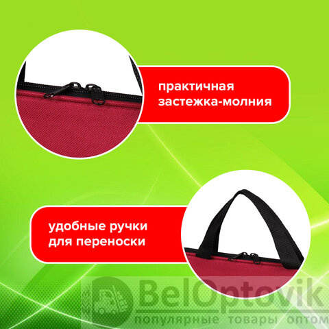 Выполнена из плотного полиэстера, что позволяет защитить документы, учебные пособия и прочие бумаги от замятий и повреждений. Ручки-тесьма. Застежка-молния по периметру папки, на молнии расположены 2 бегунка, поэтому папку можно открывать с любой стороны, а также полностью раскрыть на 180 градусов.
