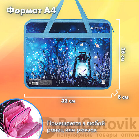 Папка на молнии с ручками BRAUBERG А4 "Magic" предназначена для транспортировки и хранения канцелярских принадлежностей и учебных пособий. Папка защитит содержимое от замятий и повреждений. Идеально подходит для внешкольных занятий.