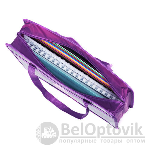 Размер папки – 330х260 мм, ширина – 80 мм. Широкий формат товара позволяет разместить большое количество канцелярских принадлежностей для творчества внутри, в том числе стакан-непроливайку. Папка имеет удобную застежку-молнию сверху. Прочные ручки с надежным креплением к папке, изготовленные из тесьмы, способствуют комфортной переноске при большой нагрузке.