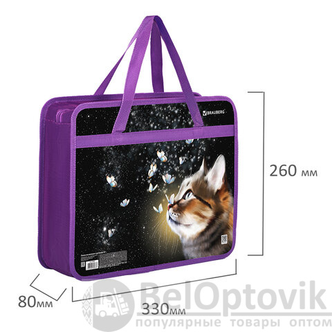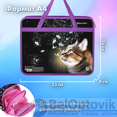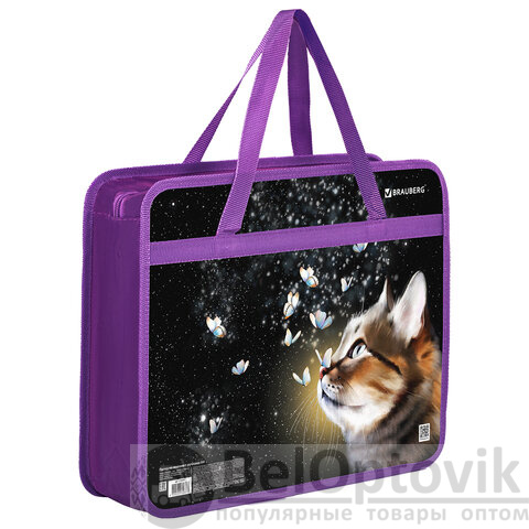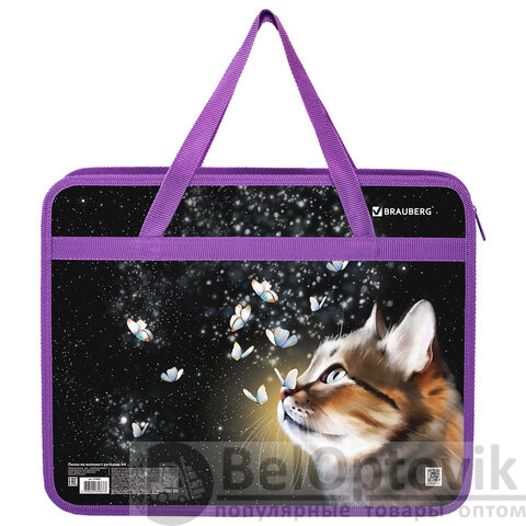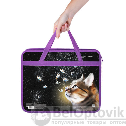 Папка на молнии с ручками BRAUBERG А4, 1 отделение, пластик, 80 мм, "Dream cat", 270868