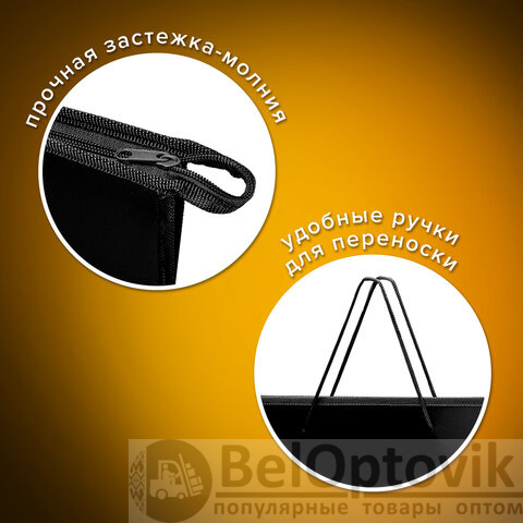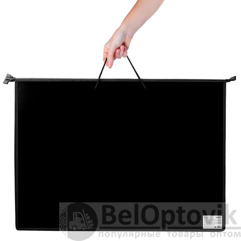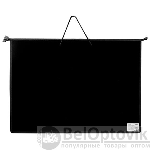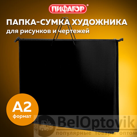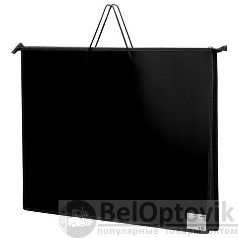 Папка для рисунков и чертежей на молнии с ручками ПИФАГОР А2, 1 отделение, пластик, ручки-шнурок, черная, 270873