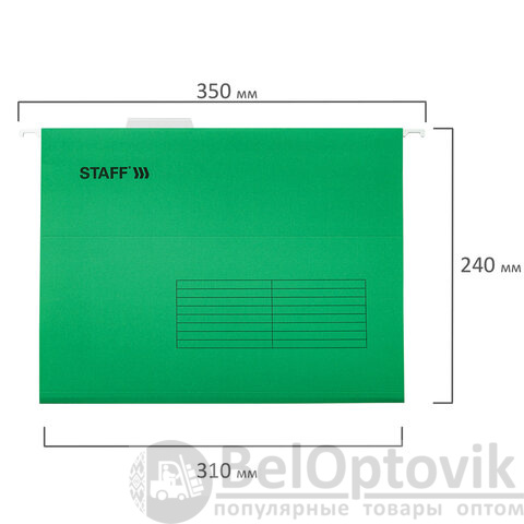Подвесные папки формата A4 STAFF предназначены для размещения в подвесной регистратуре (по бокам имеются специальные крючки). Позволяют организовать хранение данных большой информационной базы.