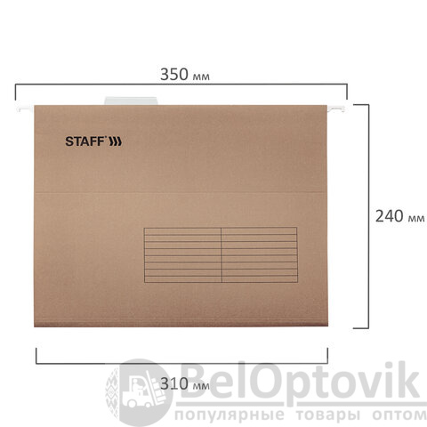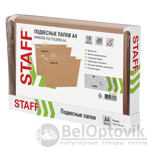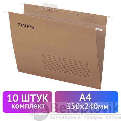 Подвесные папки А4 (350х240 мм) до 80 л., КОМПЛЕКТ 10 шт., крафт-картон, STAFF, 270932