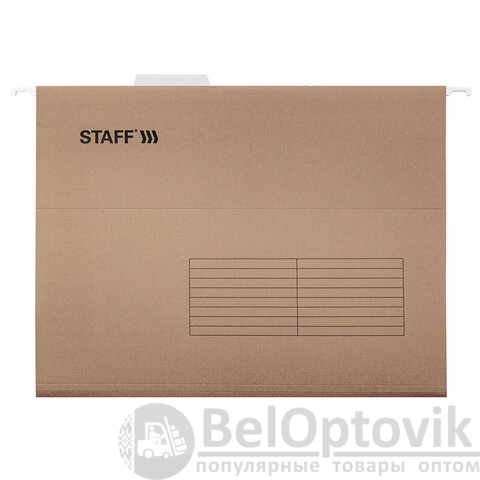 Подвесные папки формата A4 STAFF предназначены для размещения в подвесной регистратуре (по бокам имеются специальные крючки). Позволяют организовать хранение данных большой информационной базы.
