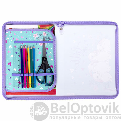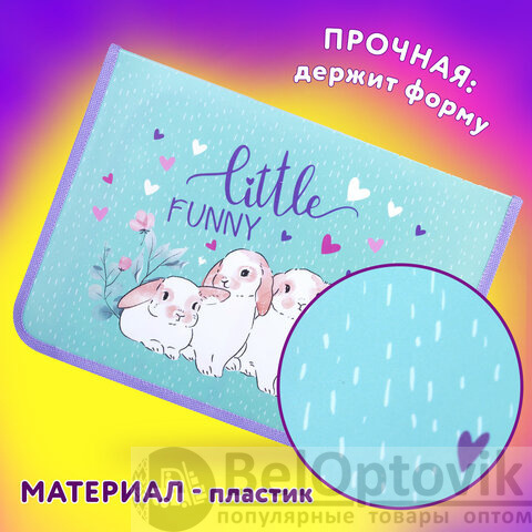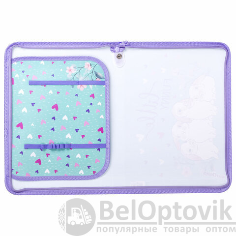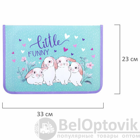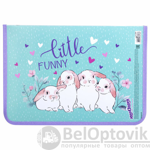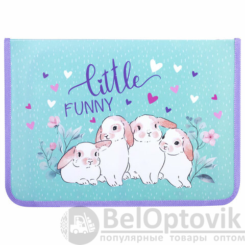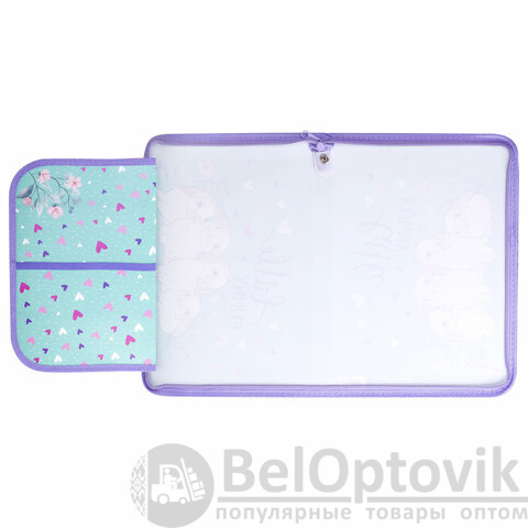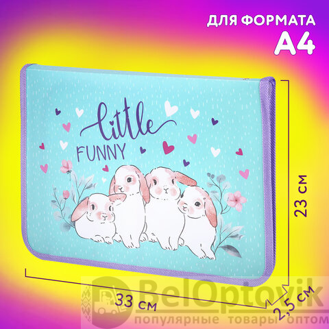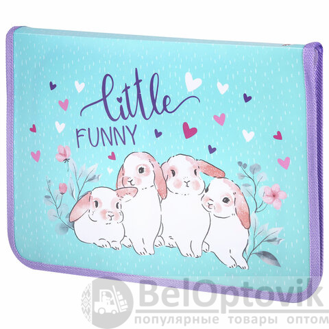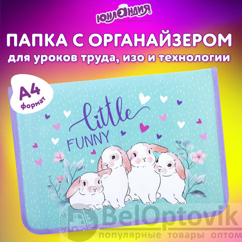 Папка для труда на молнии ЮНЛАНДИЯ А4, 1 отделение, откидная планка, органайзер, "Little bunny", 270984