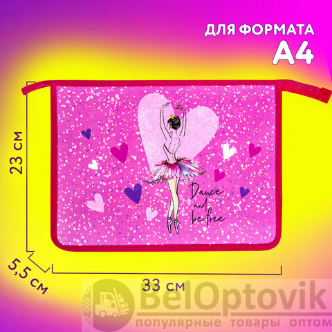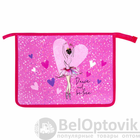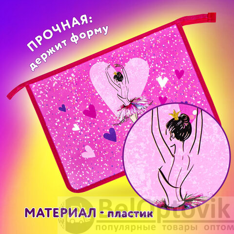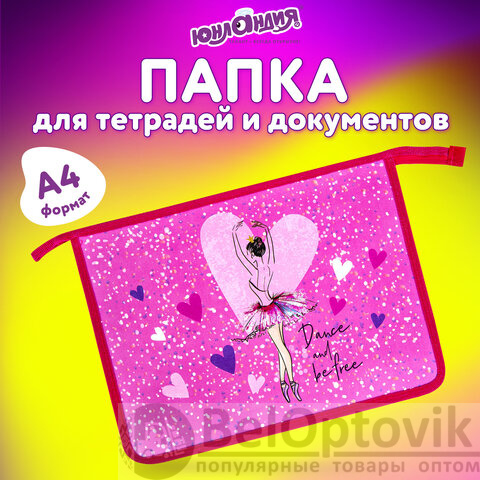 Папка для тетрадей ЮНЛАНДИЯ А4, 1 отделение, пластик, на молнии, "Ballerina", 271077
