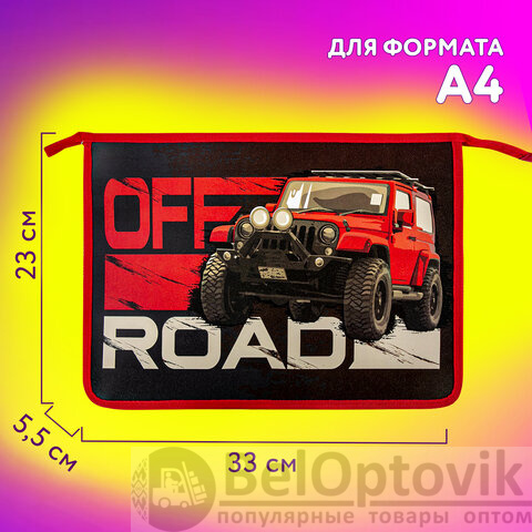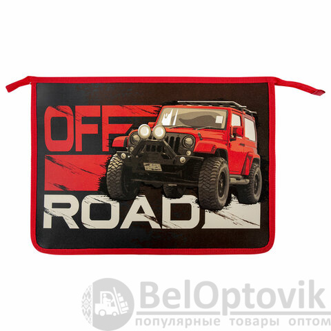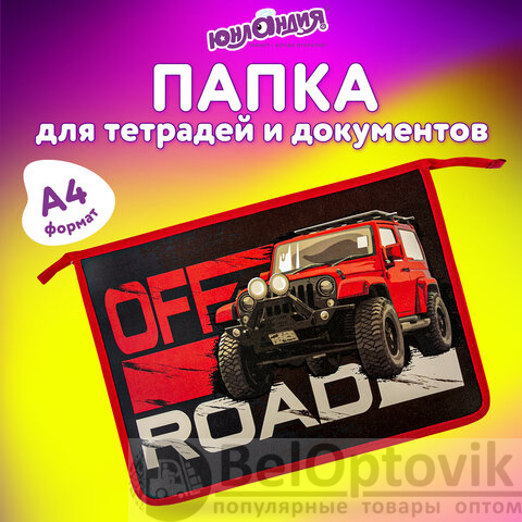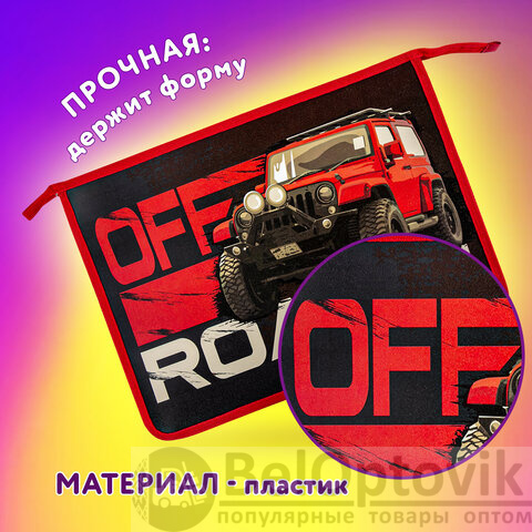 Папка для тетрадей ЮНЛАНДИЯ А4, 1 отделение, пластик, на молнии, "Offroad", 271083