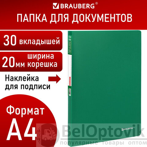 Папка BRAUBERG "Office" зеленого цвета отлично подходит для хранения документов, составления каталогов, меню и т.п.
