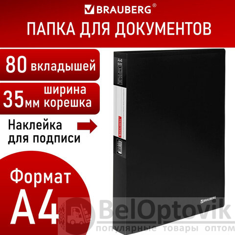 Папка BRAUBERG "Office" солидного черного цвета отлично подходит для хранения документов, составления каталогов, меню и т.п.