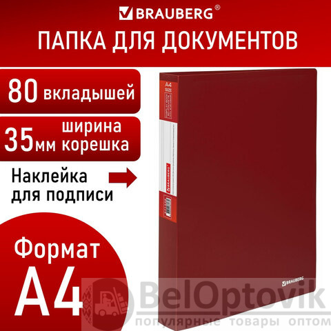 Папка BRAUBERG "Office" красного цвета отлично подходит для хранения документов, составления каталогов, меню и т.п.