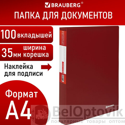 Папка BRAUBERG "Office" красного цвета отлично подходит для хранения документов, составления каталогов, меню и т.п.
