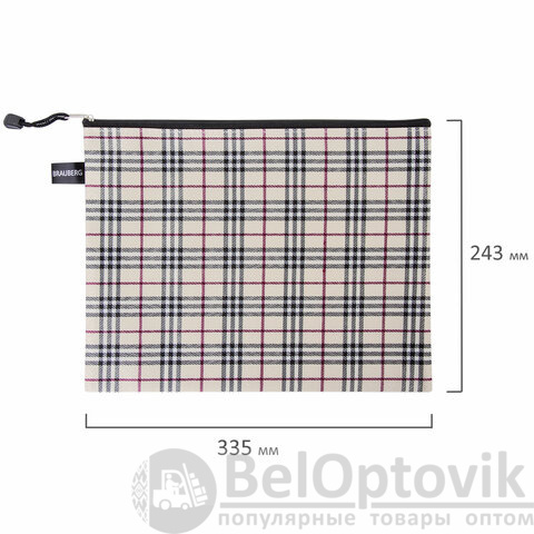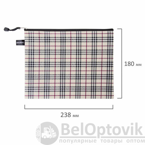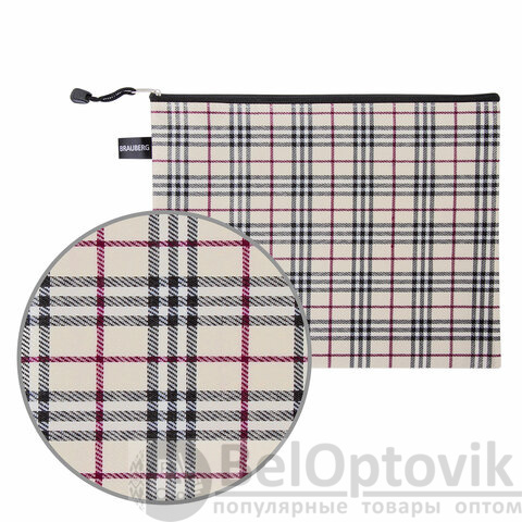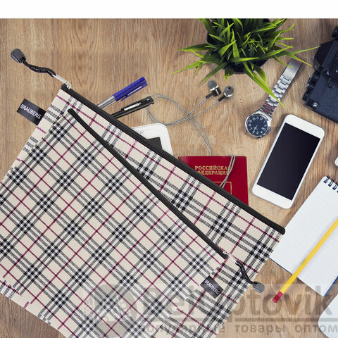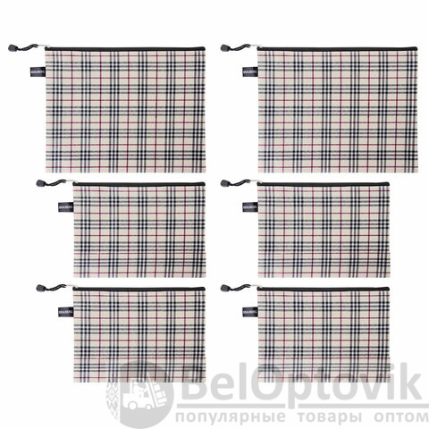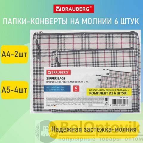 Папка-конверт СУПЕР КОМПЛЕКТ на молнии, 6 штук (А4 - 2 шт., А5 - 4 шт.), ткань в клетку, BRAUBERG, 271350