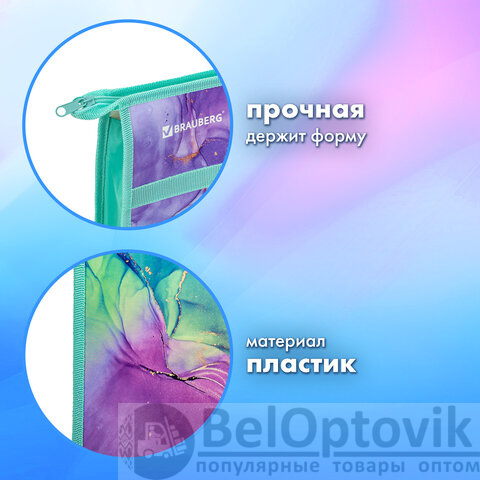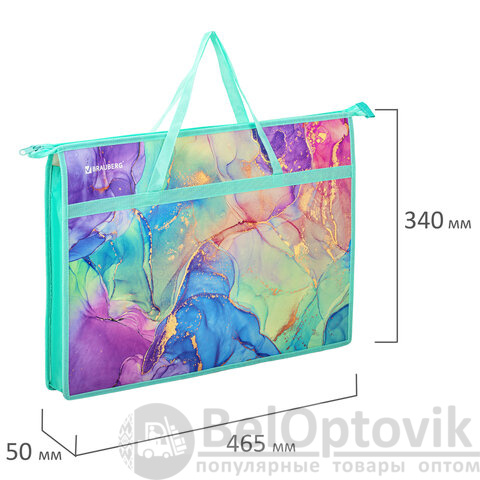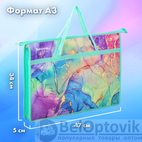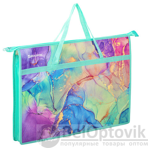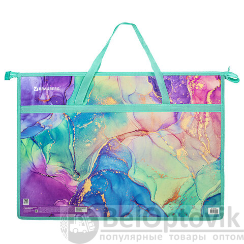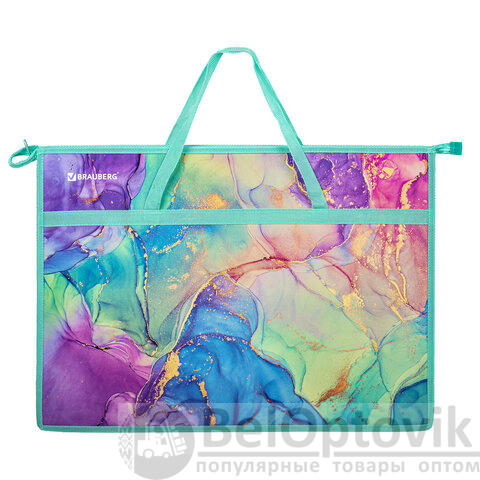 Папка для рисунков и чертежей с ручками BRAUBERG А3, пластик, молния сверху, "Marble", 271435