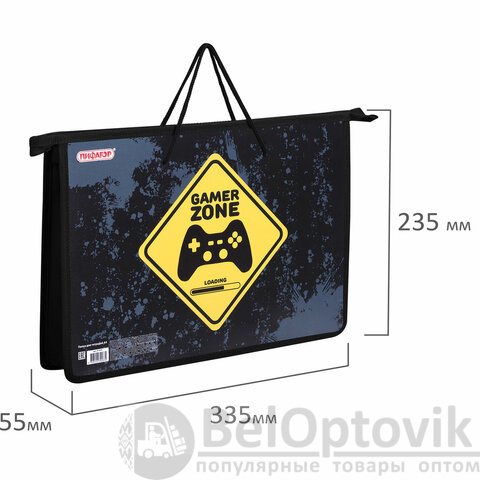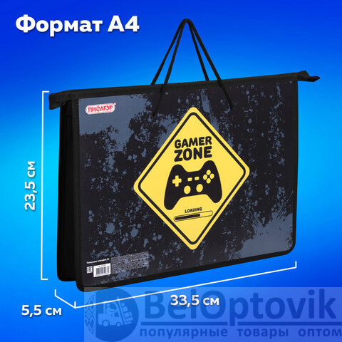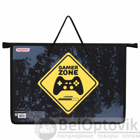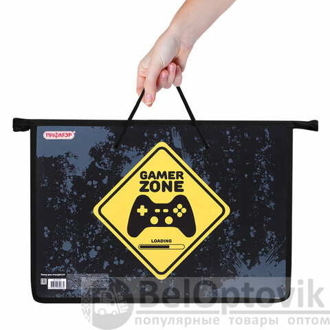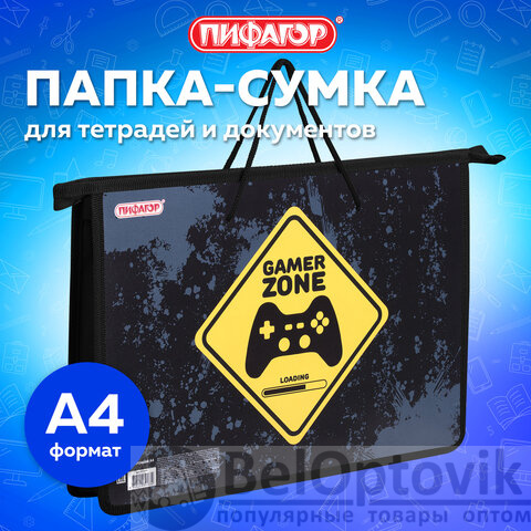 Папка на молнии с ручками ПИФАГОР А4, 1 отделение, пластик, ручки-шнурок, "Game Zone", 271470