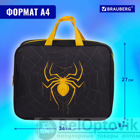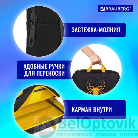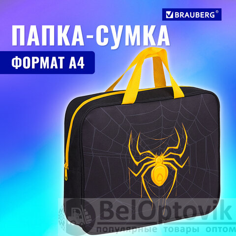 Папка на молнии с ручками BRAUBERG А4, 1 отделение, полиэстер, 80 мм, "Venomous spider", 271485