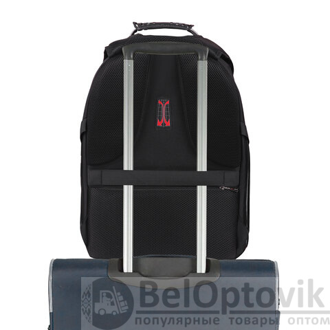 Багажная лента позволяет зафиксировать рюкзак на телескопической ручке чемодана для удобного перемещения нескольких предметов багажа.