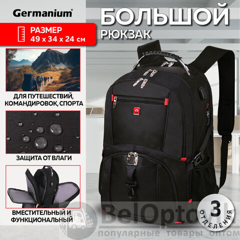 Рюкзак GERMANIUM UPGRADE Max, 3 отделения, отделение для ноутбука, USB-порт, UP-5, черный, 49х34х24 см, 271669