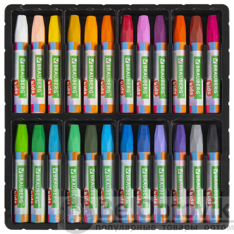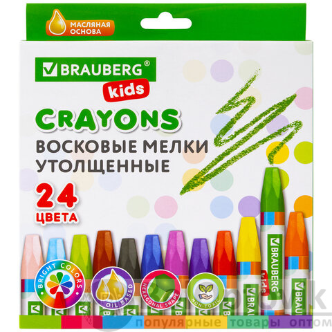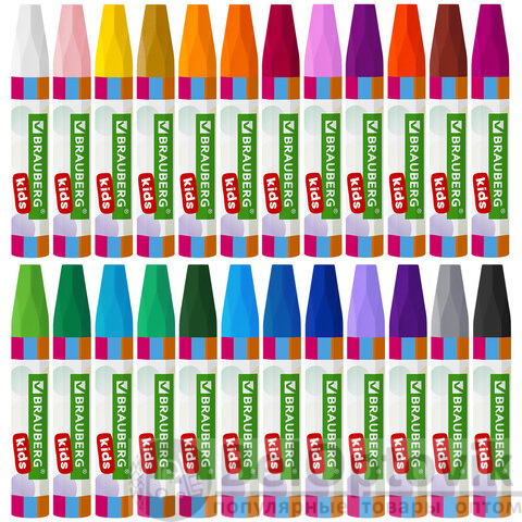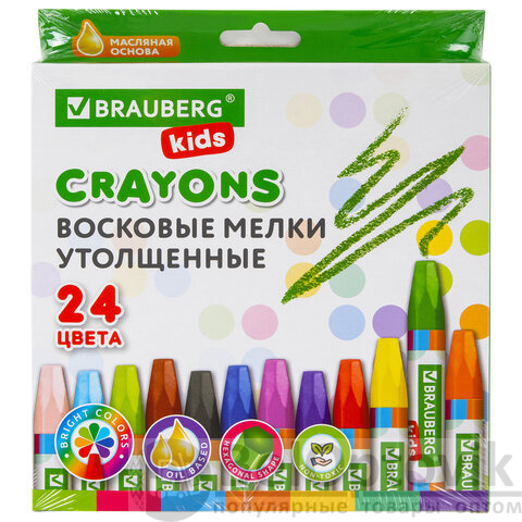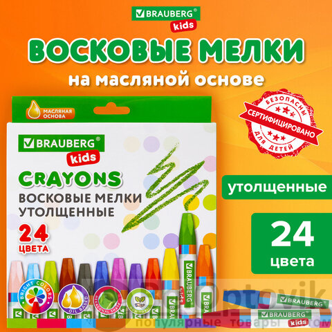 Восковые мелки утолщенные BRAUBERG KIDS, НАБОР 24 цвета, на масляной основе, яркие цвета, 271694