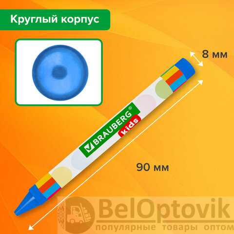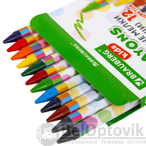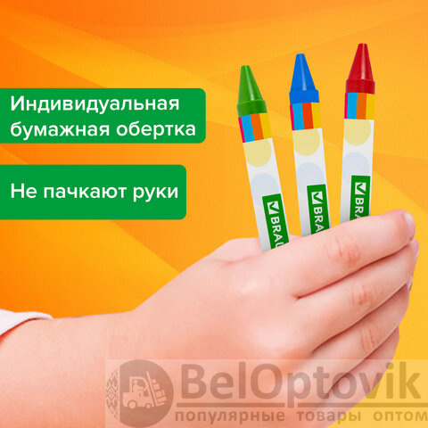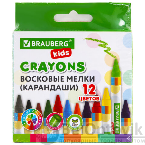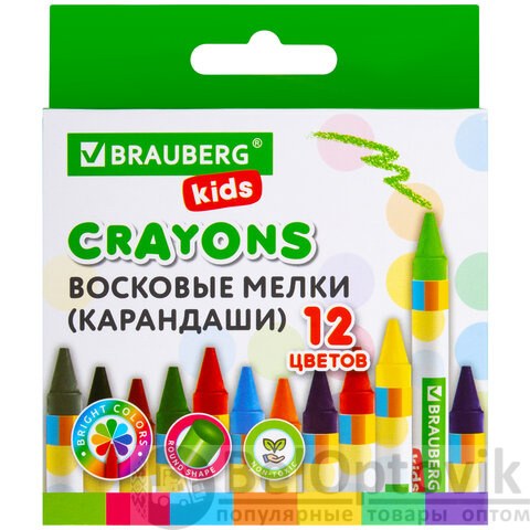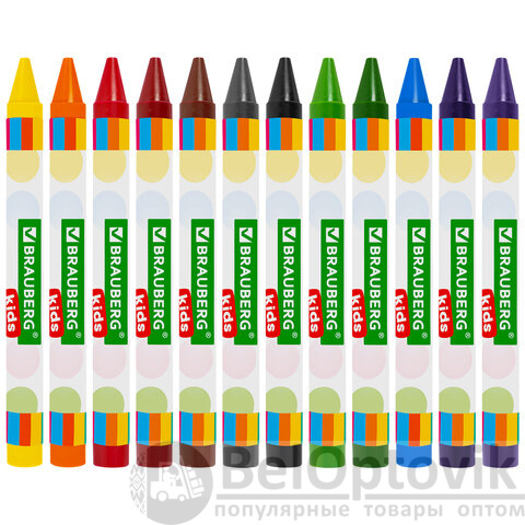 Восковые мелки BRAUBERG KIDS, НАБОР 12 цветов, 271696