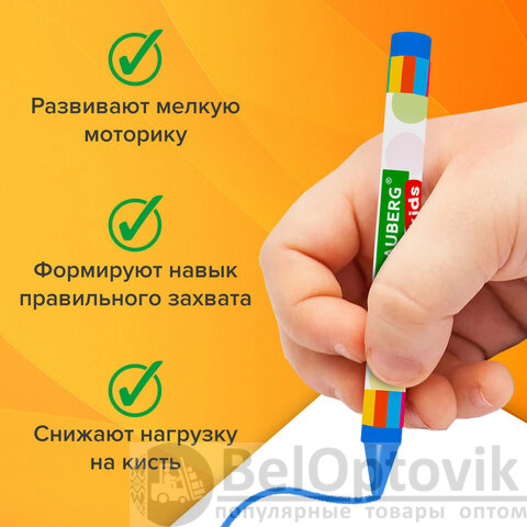 Круглая форма корпуса и диаметр 8 мм делают их подходящим инструментом для подготовки руки дошкольников и детей младшего школьного возраста к письму: формируют навык правильного захвата, снижают нагрузку на кисть.