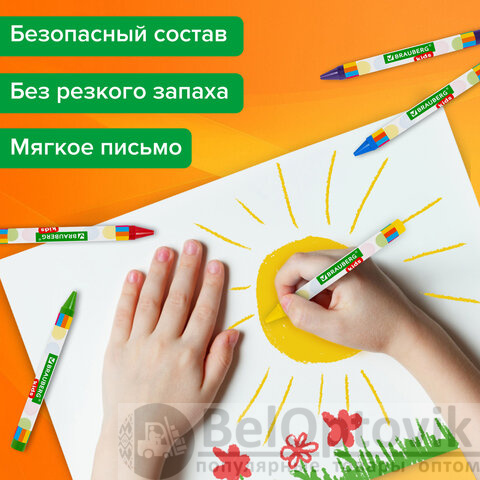 Восковые мелки BRAUBERG KIDS идеально подходят для детского творчества. Предназначены для рисования на бумаге любого типа, а также дереве, картоне и стекле.