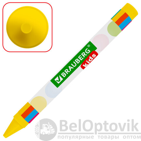 Каждый мелок обернут в бумажную гильзу, которая предотвращает скольжение пальцев и позволяет не пачкать руки. Восковые мелки упакованы в картонную коробку с европодвесом.