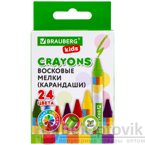Восковые мелки BRAUBERG KIDS, НАБОР 24 цвета, 271697
