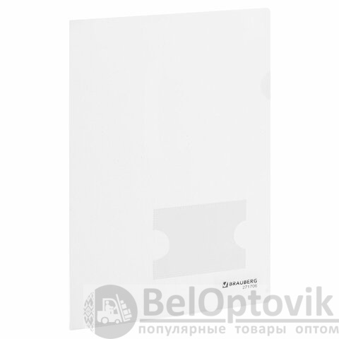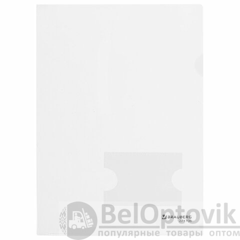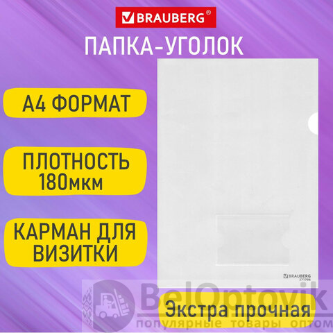 Папка-уголок с карманом для визитки А4, прозрачная, 0,18 мм, BRAUBERG EXTRA, 271706