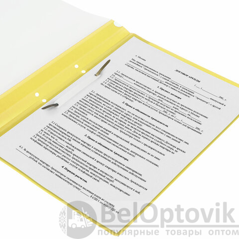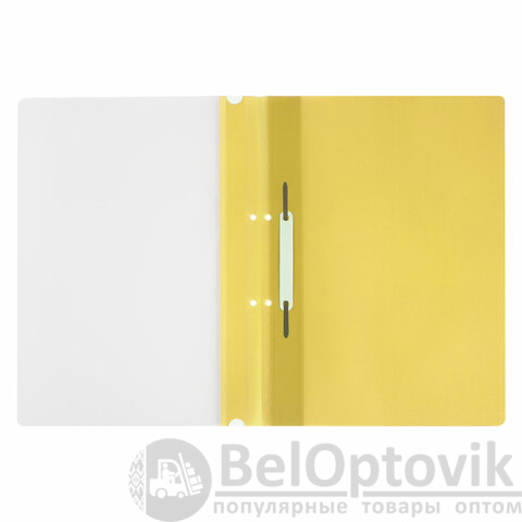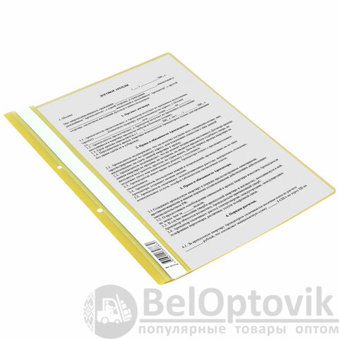Фиксирует до 100 листов формата А4. Толщина пластика верхнего листа составляет 100 мкм, а нижнего - 120 мкм. Предельно простой механизм подшивки: металлические усики и пластиковая планка для надежной фиксации документов. Скоросшиватель изготовлен из качественного полипропилена. Прозрачный верхний лист позволяет определить содержимое, не открывая скоросшиватель, который к тому же снабжен сменным пластиковым корешком, что дает возможность структурировать информацию. Кроме того, корешок скоросшивателя снабжен перфорацией, что позволяет подшивать его в папки с любым механизмом. Благодаря яркому желтому цвету обложки папка никогда не затеряется на полке.