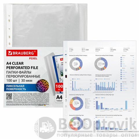 Перфорированные папки-файлы BRAUBERG "PIXEL" предназначены для хранения документов в папке с любым кольцевым механизмом или скоросшивателем.