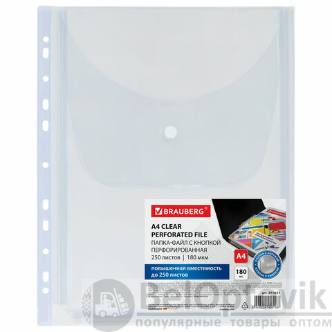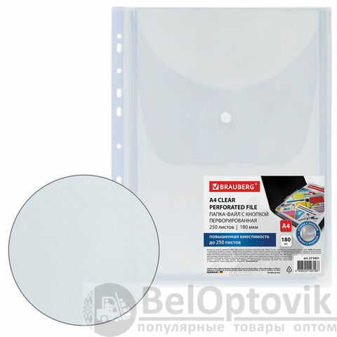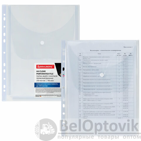 Папка-файл с перфорацией 1 штука с кнопкой БОЛЬШОЙ ВМЕСТИМОСТИ до 250 л., ПВХ 180 мкм, BRAUBERG, 271831
