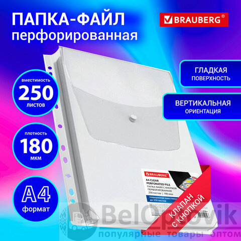 Воспользуйтесь выгодной возможностью приобрести перфорированную папку-файл BRAUBERG большой вместимости!