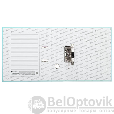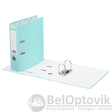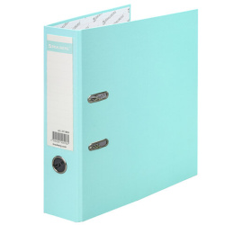 Папка формата А4 с вертикальной ориентацией изготовлена из высококачественного износоустойчивого картона с бумажным покрытием мятного цвета и матовой ламинацией. Ширина корешка в 75 мм позволяет разместить до 500 листов. Прорези для колец на внешней крышке позволяют оставаться папке закрытой даже при большом количестве бумаг, а надежный арочный механизм легко справляется с ежедневными нагрузками. Корешок папки снабжен этикеткой для маркировки содержимого, что позволяет структурировать информацию.