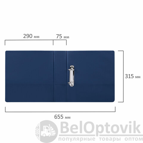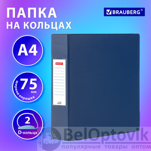 Папка на 2 кольцах, ПРОЧНАЯ, картон/ПВХ, BRAUBERG "Office", СИНЯЯ, 75 мм, до 500 листов, 271845