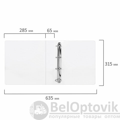 Папка стандартного формата А4 вмещает до 400 листов. Изготовлена из плотного картона с покрытием ПВХ толщиной 2 мм. Лицевая и боковая стороны папки снабжены прозрачными карманами, а на внутренней стороне имеется карман из ПВХ. Ширина корешка составляет 65 мм. Папка оснащена четырьмя кольцами D-образной формы, которые обеспечивают надежное хранение документов. В неё можно вставить файлы или проколотые дыроколом документы. Допускается влажная обработка поверхности. Каждая папка упакована в индивидуальный пакет.
