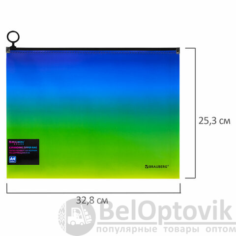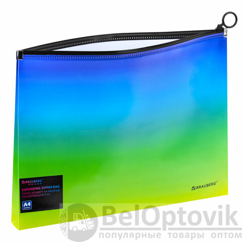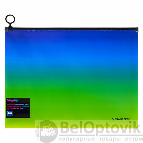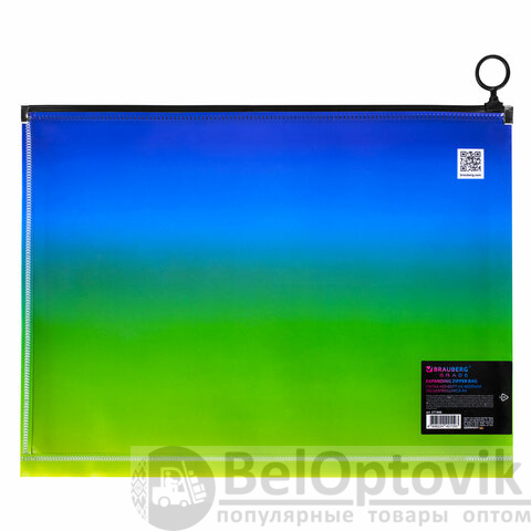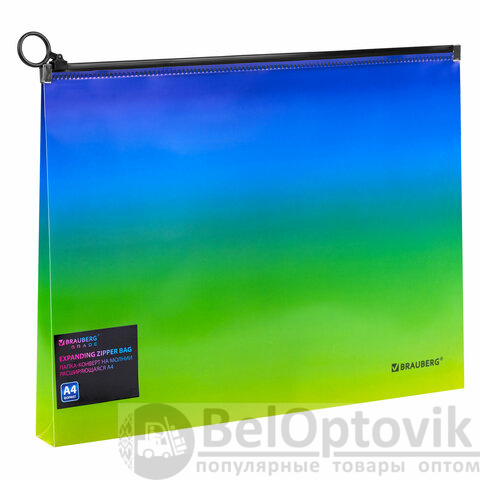 Папка-конверт расширяющаяся на молнии BRAUBERG "Grade", А4, до 300 листов, зелено-голубой градиент, 0,18 мм, 271966